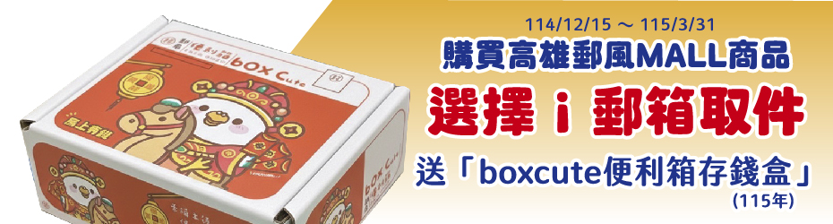 🛒i郵箱取貨 單單加碼送114/12/15~115/3/31期間,使用i郵箱取貨,加碼送boxcute便利箱存錢盒(115年),活動數量有限!送完為止!